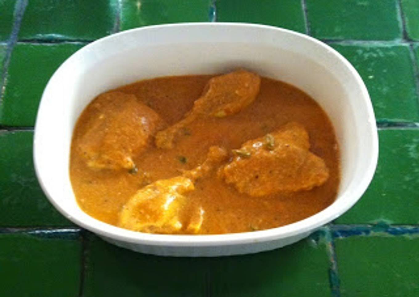 - El la licuadora ponemos un pedazo de cebolla, uno o dos dientes de ajo, dos o tres jitomates, un pedacito de canela, una pizca de clavo molido, pimienta, molemos con más consomé del pollo y lo colamos sobre el molido de almendra que tenemos en la cacerola grande. Probamos de sal y si hace falta añadimos un poco y agregamos las piezas de pollo. Dejamos que espese a fuego suave.