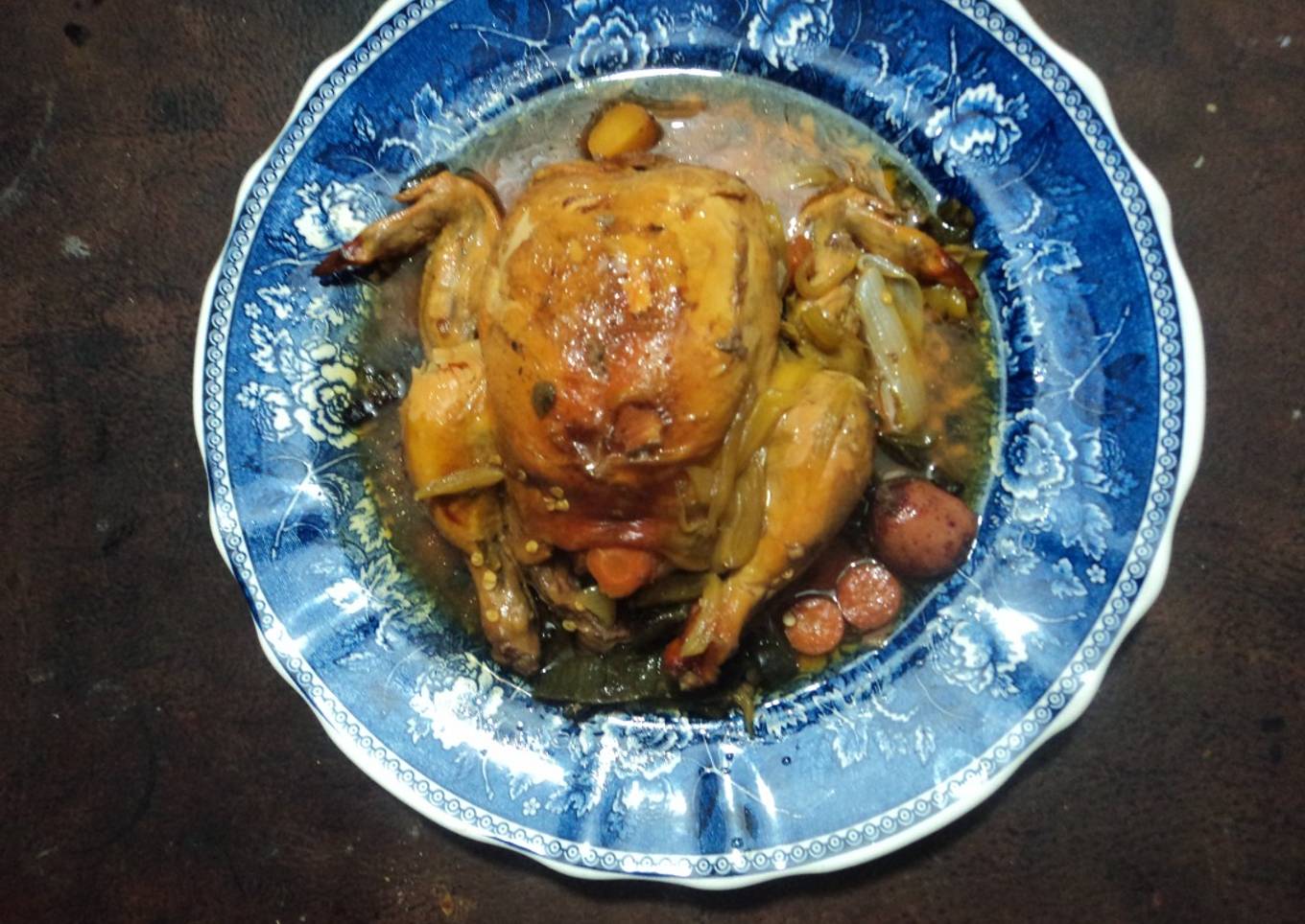 - Ponemos el pollo en una cazuela de barro y le ponemos el aguamiel o el refresco de naranja, metemos al horno a temperatura baja por dos horas y sacamos. Dejamos reposar antes de servir.